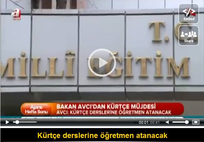 Milli Eğitim Bakanı Nabi Avcı, bu yıl ilk kez Kürtçe öğretmeni ataması yapılacağını müjdeledi. Atamalar okullara değil, İl Milli Eğitim Müdürlüklerine yapılacak.