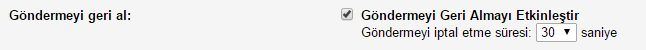 Gmail'in sağ üst kısmındaki dişli çark üzerinden Ayarlar'a bastığınızda karşınıza çıkan Genel Ayarlar sekmesi altında biraz aşağılara indiğinizde, artık Göndermeyi Geri Al isminde bir seçenek ile karşılaşacaksınız. Etkinleştirdikten sonra, 5, 10, 20 ve 30 saniye gibi zaman aralıkları seçerek, gönderdiğiniz e-postayı geri almak için ihtiyacınız olan zamanı belirleyebiliyorsunuz.