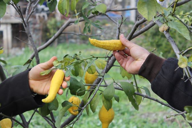 Dörtyol ilçesinde bir narenciye bahçesinde şekli biberi andıran limonlar görenlerin ilgisini çekiyor.
