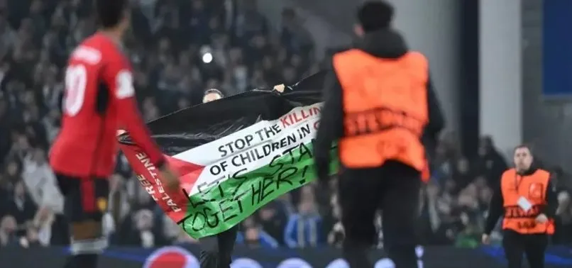 UEFA Şampiyonlar Ligi A Grubu dördüncü maçında Kopenhag, sahasında Manchester United'ı konuk etti. 4-3’lük skorla Kopenhag’ın United'ı mağlup ettiği maçın başında futbol gündemine damga vuran bir olay yaşandı. Bir taraftar, Filistin'e destek veren bir bayrakla sahaya indi. Taraftarın açtığı bayrakta “Filistin için birlik olalım” çağrısı dikkat çekti. İşte detaylar…