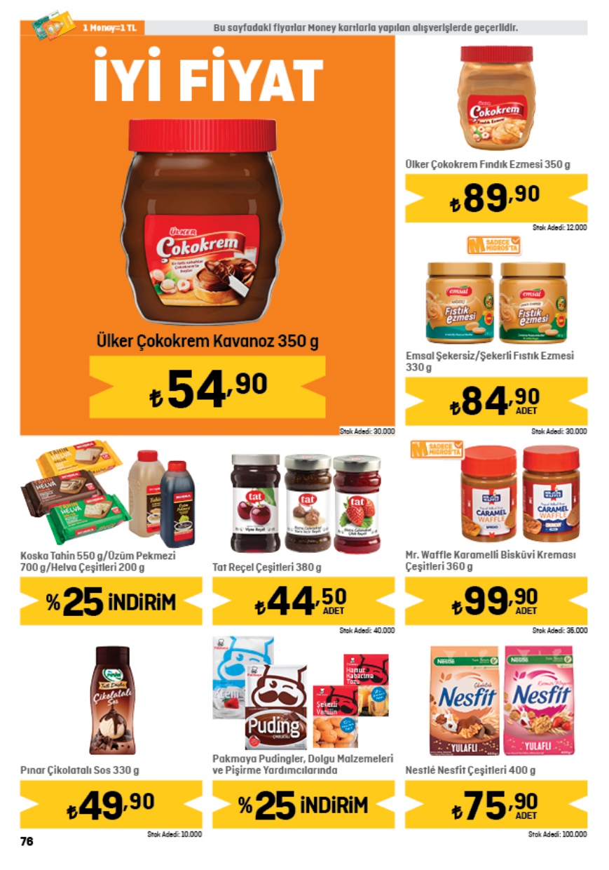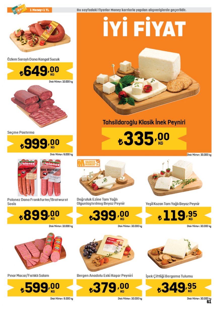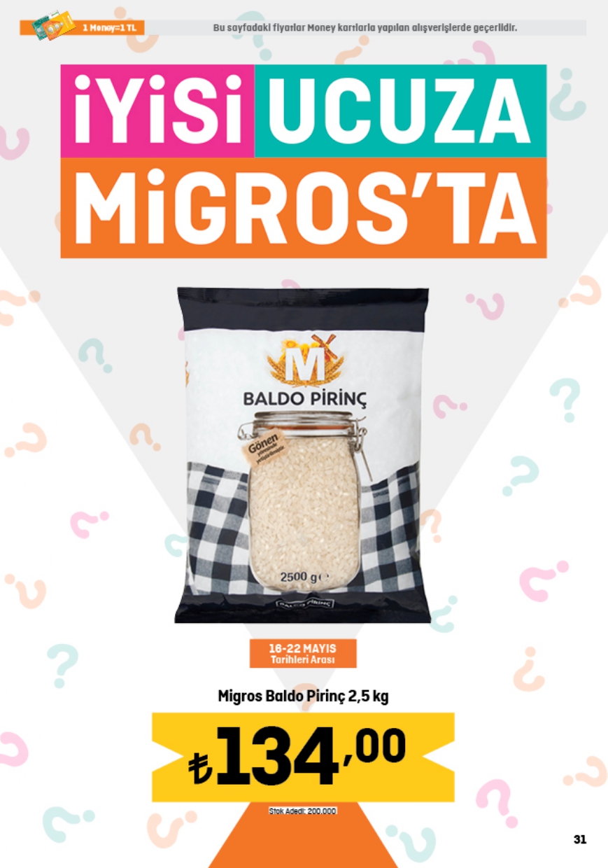 Migros herkesin merakla beklediği 1 Haziran indirim kataloğunda yer alan ürünlerin tam listesini yayınladı. Haftanın indirim kampanyası kapsamında 2,5KG Baldo Pirinç 134,00 TL, Gözde İzmir Kalçalı Piliç 89,25 TL, Migros 3KG yoğurt 98,50 TL, Migros Çiçek Balı 75,90 TL, Migros Yumuşatıcı 5L 99,95 TL, Kangal Sucuk 149,00 TL, Torba Lor Peynir 29,95 TL, Kaymak 38,50 TL, Organik yumurta 10'lu 62,00 TL, Ayçiçek Yağı 5L 228,95 TL, Toz Şeker 5KG 154,95 TL, Domates Salçası 38,95 TL, Siyah Çay 119,90 TL, Maden Suyu 6x200 24,00 TL fiyattan satışa sunuluyor. İşte Migros haftanın indirim afişi…