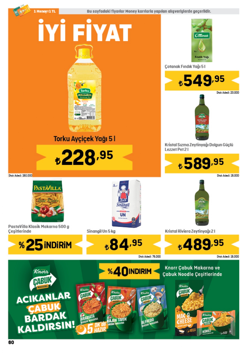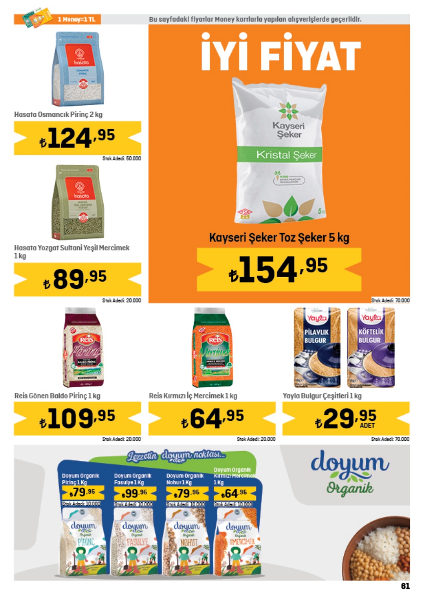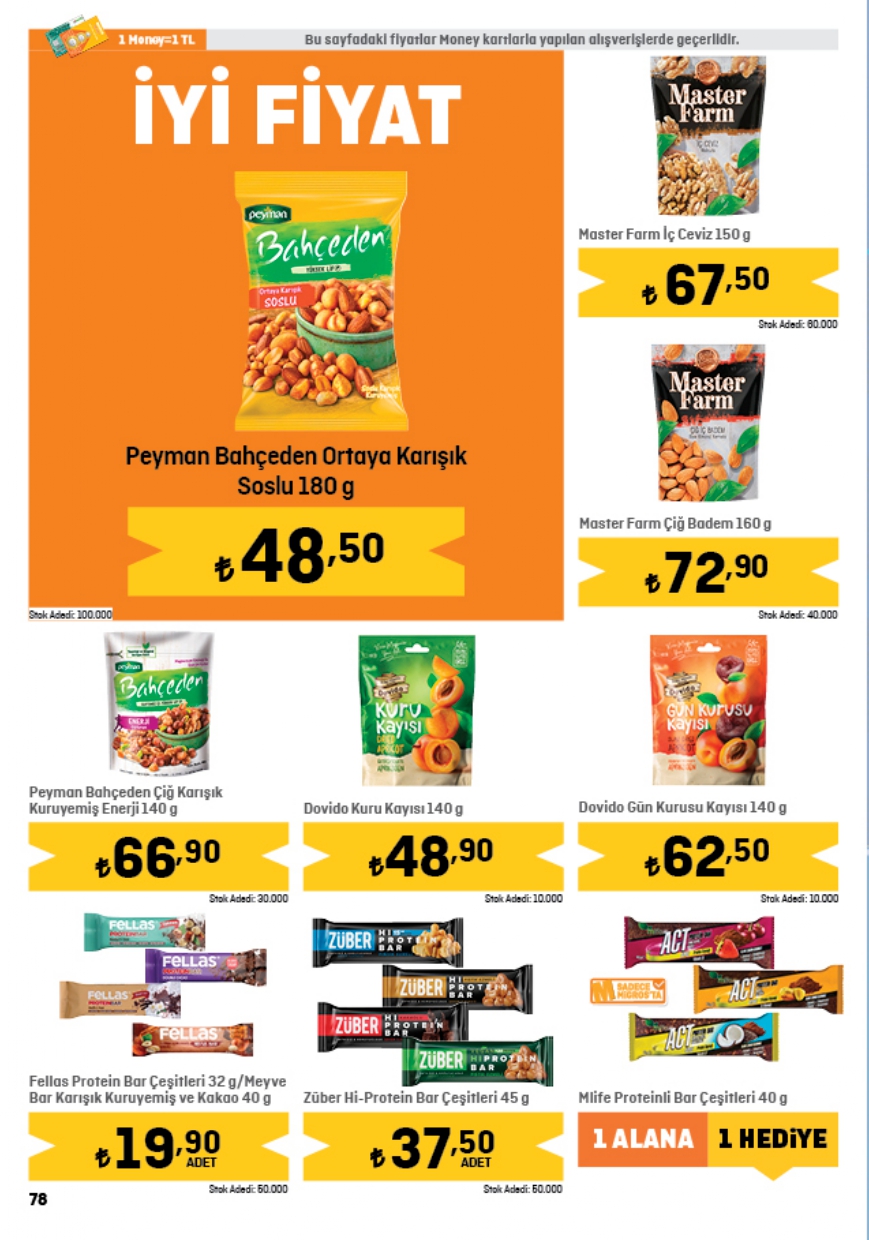 Migros herkesin merakla beklediği 1 Haziran indirim kataloğunda yer alan ürünlerin tam listesini yayınladı. Haftanın indirim kampanyası kapsamında 2,5KG Baldo Pirinç 134,00 TL, Gözde İzmir Kalçalı Piliç 89,25 TL, Migros 3KG yoğurt 98,50 TL, Migros Çiçek Balı 75,90 TL, Migros Yumuşatıcı 5L 99,95 TL, Kangal Sucuk 149,00 TL, Torba Lor Peynir 29,95 TL, Kaymak 38,50 TL, Organik yumurta 10'lu 62,00 TL, Ayçiçek Yağı 5L 228,95 TL, Toz Şeker 5KG 154,95 TL, Domates Salçası 38,95 TL, Siyah Çay 119,90 TL, Maden Suyu 6x200 24,00 TL fiyattan satışa sunuluyor. İşte Migros haftanın indirim afişi…