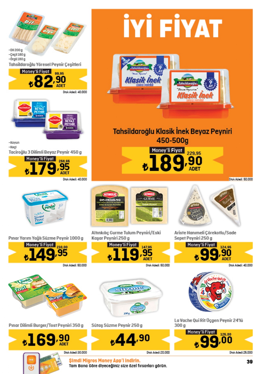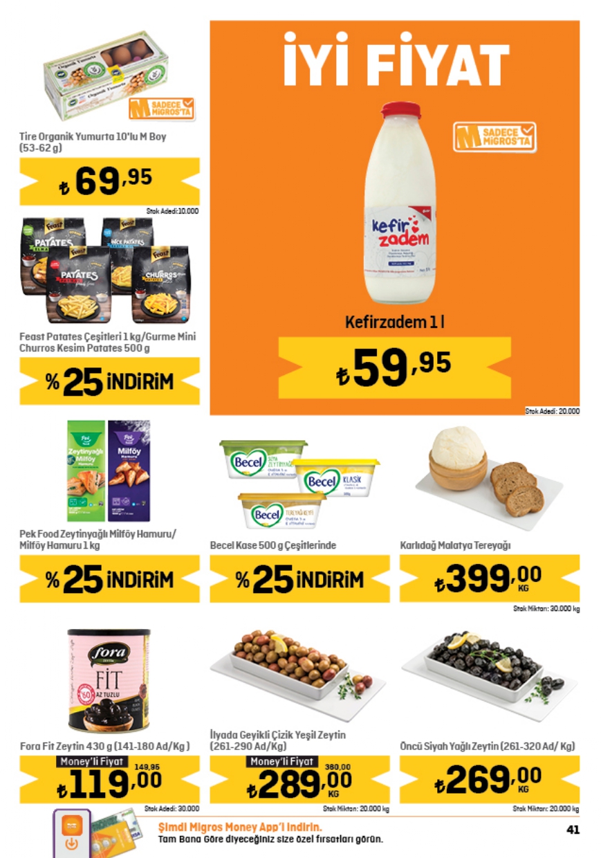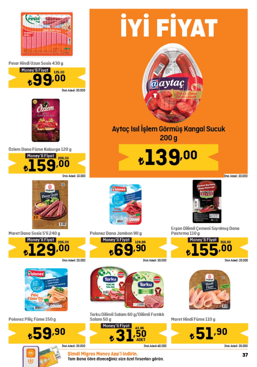 Migros 13 Mayıs indirim kataloğu yayınlandı. Haftanın indirimli ürünleri arasında Aytaç Kangal Sucuk 139,00 TL, Sütaş Süzme Peynir 44,90 TL, Eker Tava Yoğurt 58,95 TL, Kefir Zadem 59,95 TL, Abalı Ayçiçek Yağı 5L 199,95 TL'lik uygun fiyatı dikkatleri üzerine çekmeyi başardı. Listede daha yüzlerce ürün uygun fiyattan kampanya süresince satışa sunulacak. İşte yeni fiyat listesi…