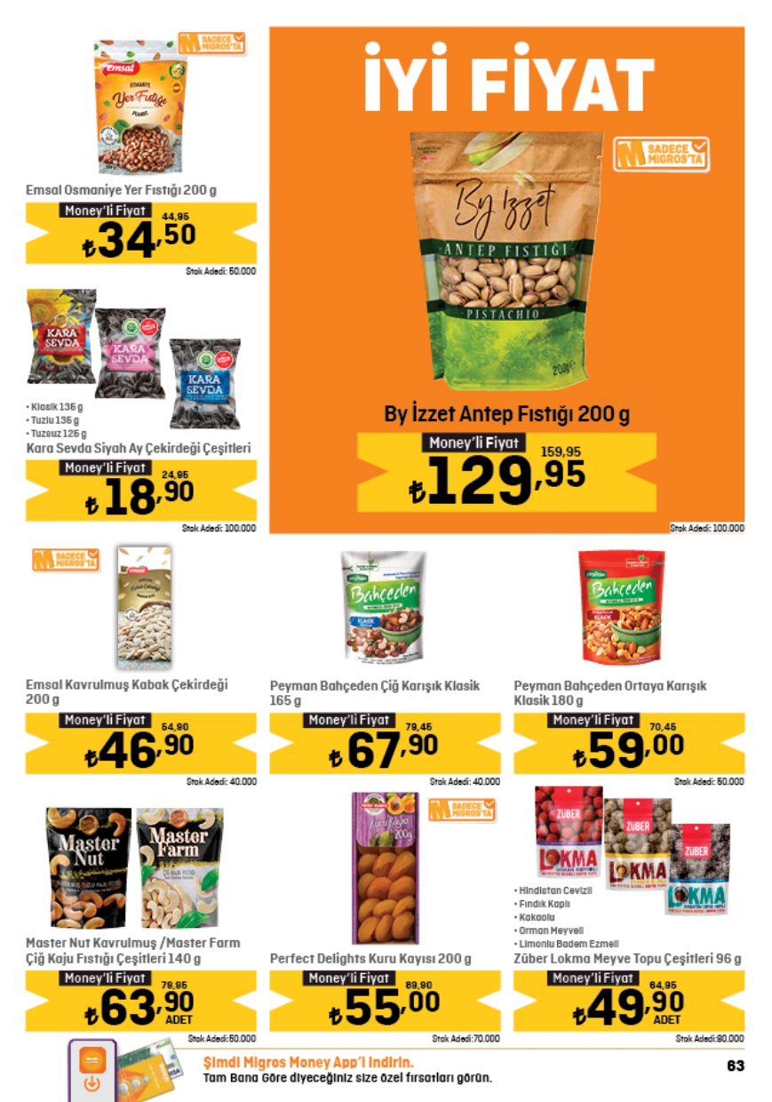 Migros 13 Mayıs indirim kataloğunda yer alan yeni indirimli ürünlerini açıkladı. 15 Mayıs 2024 tarihine kadar devam edecek kampanya kapsamında Aytaç Kangal Sucuk 139,00 TL, Sütaş Süzme Peynir 44,90 TL, Eker Tava Yoğurt 58,95 TL, Kefir Zadem 59,95 TL, Abalı Ayçiçek Yağı 5L 199,95 TL, Nar Toz Şeker 5KG 149,95 TL, İpek Köy Domates Salçası 99,95 TL, Efor Rize Siyah Çay 103,95 TL, Cappy Çeşitleri 35,00 TL, Saka Doğal Maden Suyu 29,50 TL, Fusetea çeşitleri 20,95 TL, Dimes Vişne Nektarı 37,95 TL fiyat etiketi ile satışa sunuluyor. İşte Migros haftanın indirim afişi…