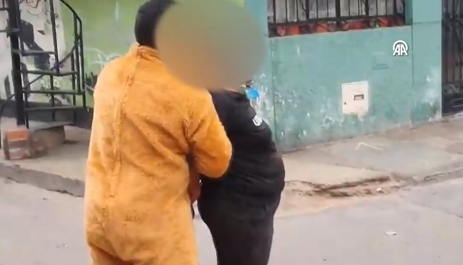 Çiçek ve çikolatayı almak için evinden ayrılarak merdivenlerden inen kadın, sokakta işçi kılığında bekleyen diğer polisler ve ayı kılığındaki polis tarafından kıskıvrak yakalandı.