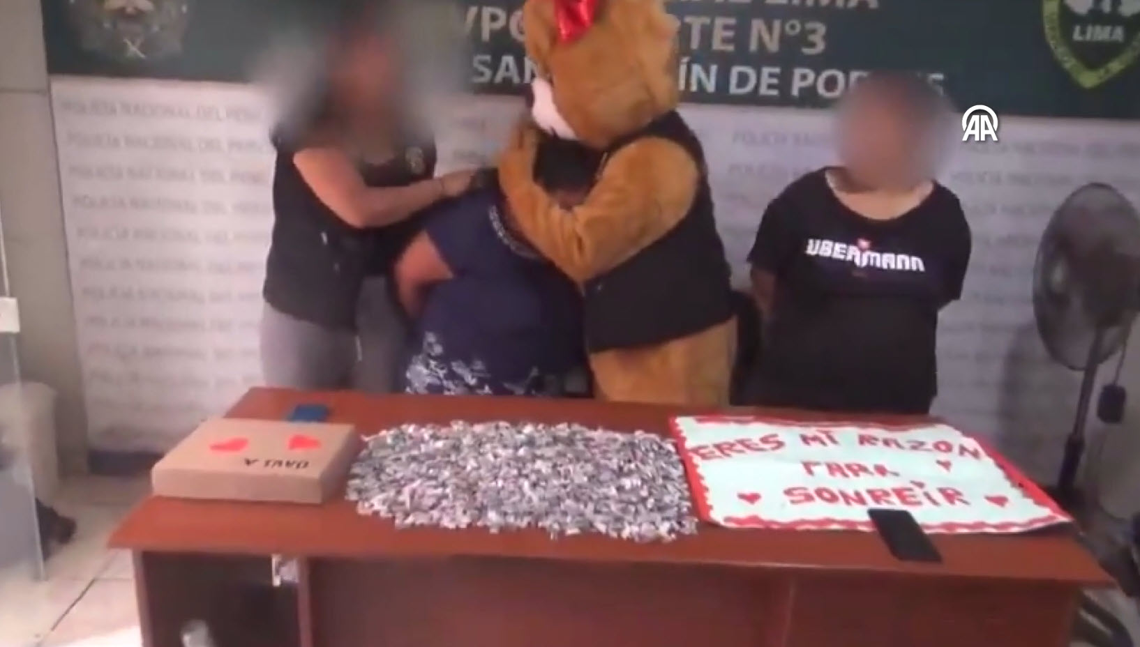 Güney Amerika ülkesi Peru'da Sevgililer Günü'nü fırsat bilen narkotik polisleri ayı kostümüyle uyuşturucu operasyonu gerçekleştirdi. İşte o ilginç operasyondan görüntüler...
