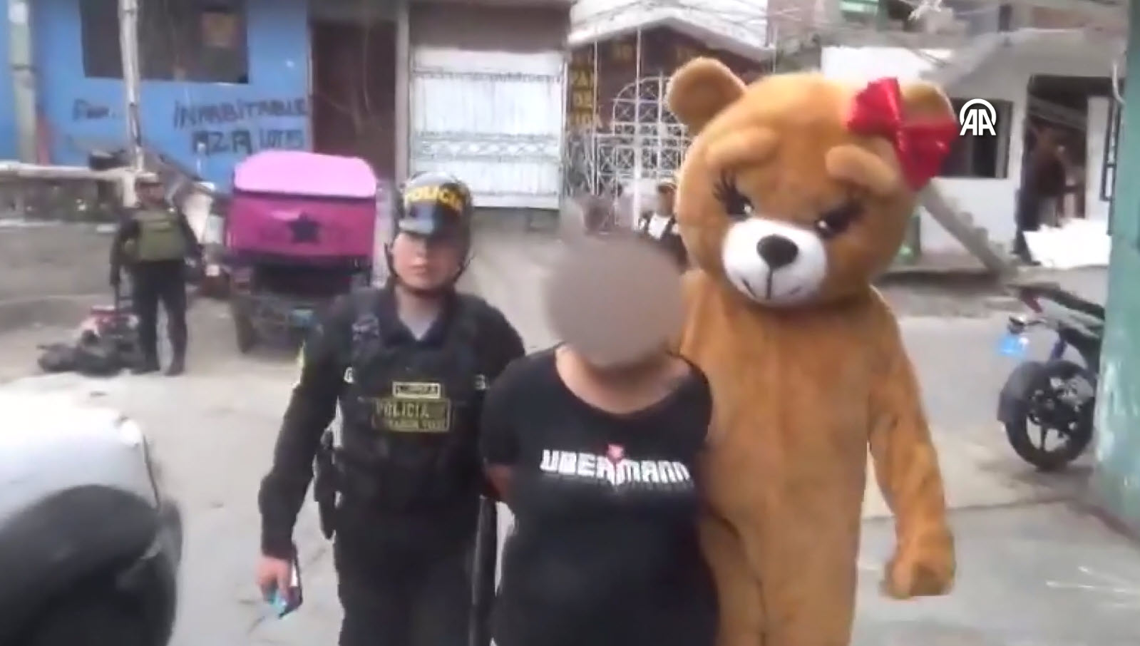 Başkent Lima'da animasyondan filminden esinlenen polis memuru, uyuşturucu sattığı belirlenen kadını yakalamak için ayı kostümü giydi.