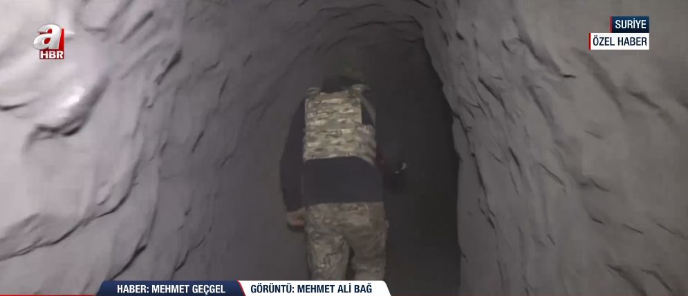 Suriye'deki terör inlerine girerek operasyonun boyutunu yerinde inceleyen Mehmet Geçgel, "A Haber ekibi olarak terör tünellerini ekranlara taşımaya devam ediyoruz. Teröristlerin inlerine giriyoruz. Burası da Suriye ordusunun yoğun operasyon gerçekleştirdiği bir başka tünel alanı. Teröristler bu noktaya araçla da ilerlenebilen bir tünel inşa ettiler." ifadelerini kullandı.