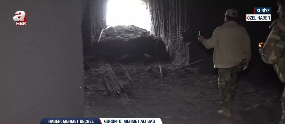 A Haber ekibi, Suriye'de terör örgütü YPG'nin ana karargâh ve mühimmat deposu olarak kullandığı, Suriye ordusu tarafından imha edilen devasa tünel ve mağaraları görüntüledi. Kilometrelerce uzanan, araçların dahi ilerleyebildiği karanlık tünellerde havan mermilerinden el bombalarına kadar tonlarca mühimmat ele geçirilirken, teröristlerin dağın altını nasıl bir cephaneliğe çevirdiği gözler önüne serildi.