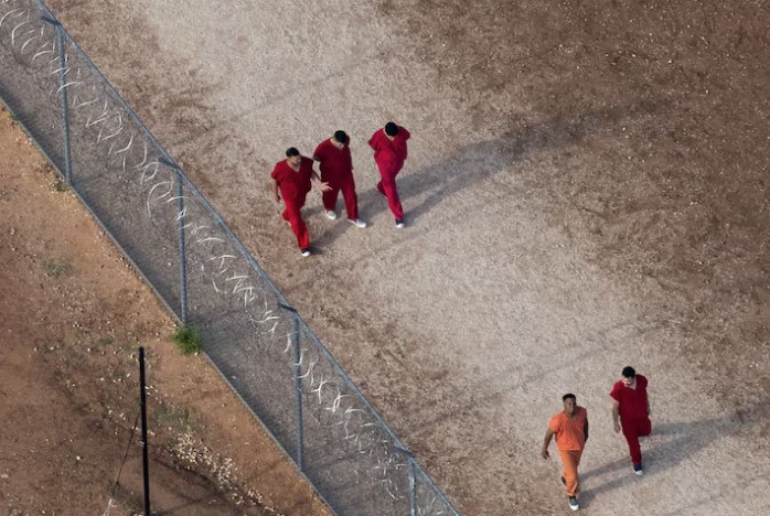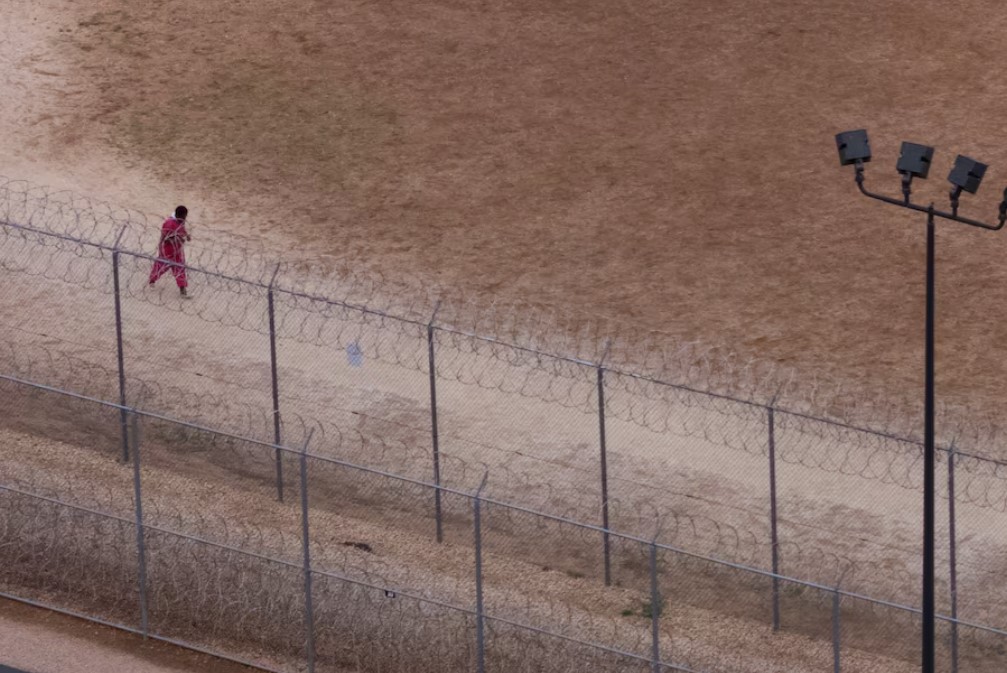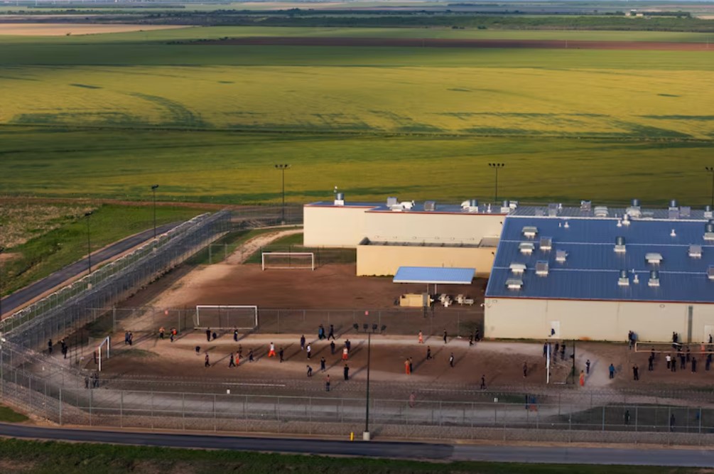 Teksas'ın Anson kentinde bulunan Bluebonnet Gözaltı Merkezi'nde tutulan 31 göçmen, Reuters'a ait bir drone'un havada olduğu sırada, avlunun toprak zemininde vücutlarıyla "S-O-S" yazdı. Bu sessiz çığlık, içeride yaşanan çaresizliği gözler önüne serdi.