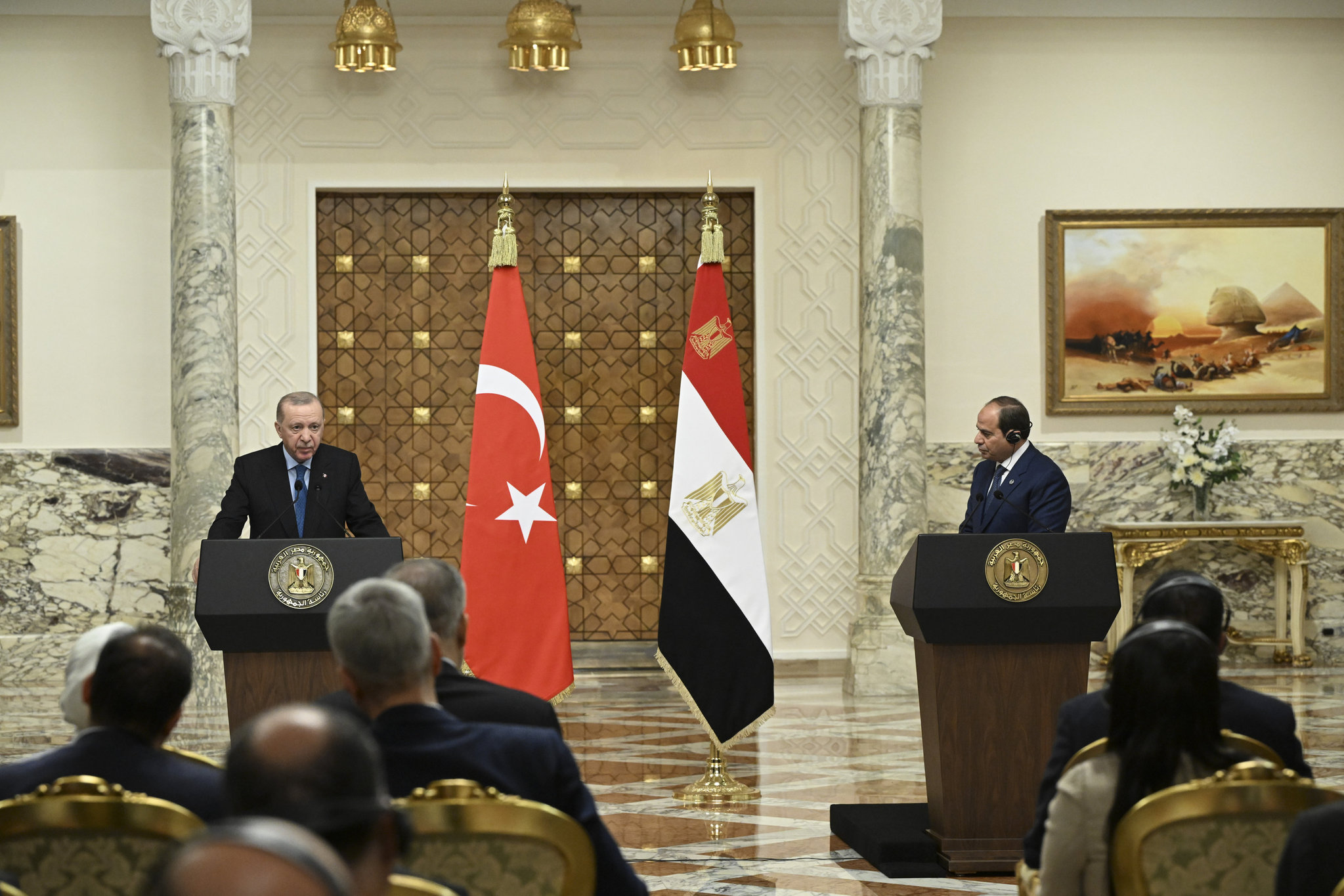 Haberde, Erdoğan'ın Kahire'ye gelişi sırasında Mısır Cumhurbaşkanlığı tarafından yapılan açıklamaya dikkat çekilerek, iki liderin, resmi görüşme yaptığı, ardından "yüksek düzeyli stratejik iş birliği konseyi" toplantısını gerçekleştirdiği, ayrıca Türk-Mısır iş dünyasının katıldığı ekonomik foruma iştirak ettiği aktarıldı.