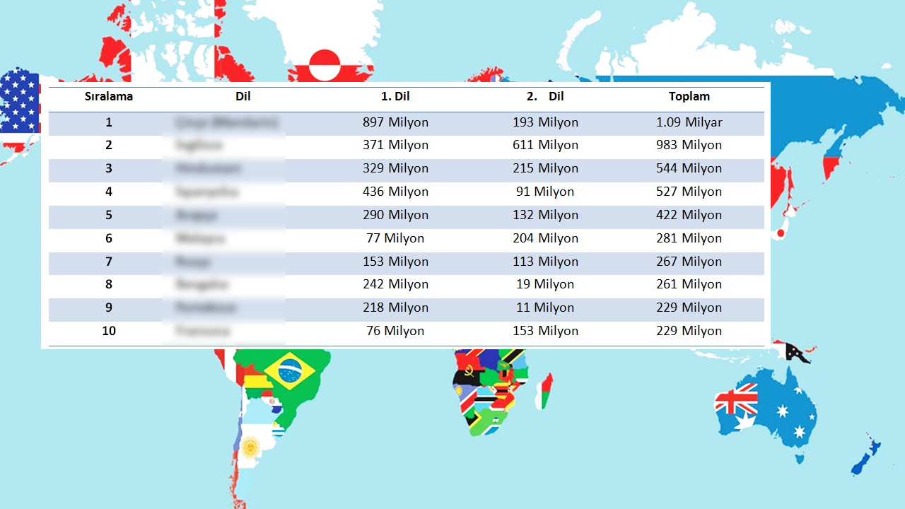Birleşmiş Milletler verilerine göre dünyada 208 ülke bulunmaktadır ve her biri kendi benzersiz kültürlerine ve geleneklerine sahiptir. Bu geniş çeşitlilik, her ülkenin kendi dilini korumasına ve kullanmasına olanak tanır. Ancak, küresel iletişimde sıkça tercih edilen belirli dillerin olduğu da bir gerçektir. İngilizce gibi küresel çapta yaygın olarak kullanılan diller, bu listede önemli bir konuma sahiptir. Türkçe, bu sıralamada Farsça, Mısır Arapçası, İtalyanca, Korece gibi birçok dilin önünde yer alarak dikkat çekmektedir. Peki dünya genelinde en çok konuşulan diller hangileri? İşte bu dillerin sıralaması...