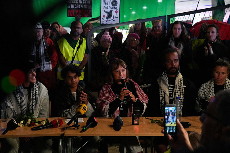 Gazze'ye insani yardım ulaştırmaya çalışan Küresel Sumud Filosu'na İsrail işgal güçlerinin müdahalesi sırasında alıkonulan İsveçli çevre aktivisti Greta Thunberg, İsveç'e döndü ve yaşadıkları işkenceleri kamuoyuyla paylaştı.