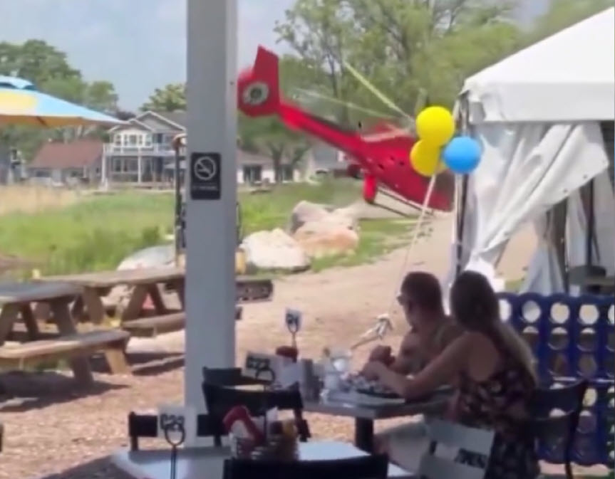 ABD'nin Michigan eyaletinde bir restoranın yakınındaki boş araziye iniş yapmaya çalışan helikopter yan yatıp devrildi. O anlar ve çevredekilerin paniği saniye saniye kameraya yansıdı.