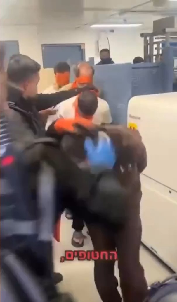 Filistin Esirler Medya Ofisi tarafından paylaşılan ve İbranice yayın yapan bir kaynaktan alınan görüntülerde, elleri arkadan kelepçelenmiş, gözleri bağlı ve başları öne eğilmiş şekilde sıraya dizilen Filistinli esirlerin, İsrail askerleri ve polisleri eşliğinde yürütüldüğü görülüyor.