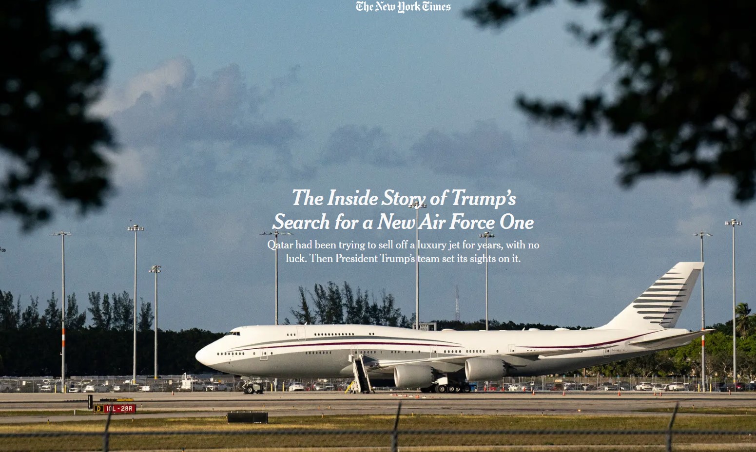 ABD siyasetinde tartışmalara yol açan lüks uçak hediyesinin ayrıntılarını, New York Times (NYT) gazetesi "Trump'ın Yeni Air Force One Arayışının Perde Arkası. Katar, yıllardır lüks bir jeti elden çıkarmaya çalışıyordu ama alıcı bulamıyordu. Derken Başkan Trump'ın ekibi bu uçağa gözünü dikti." başlığıyla duyurdu.