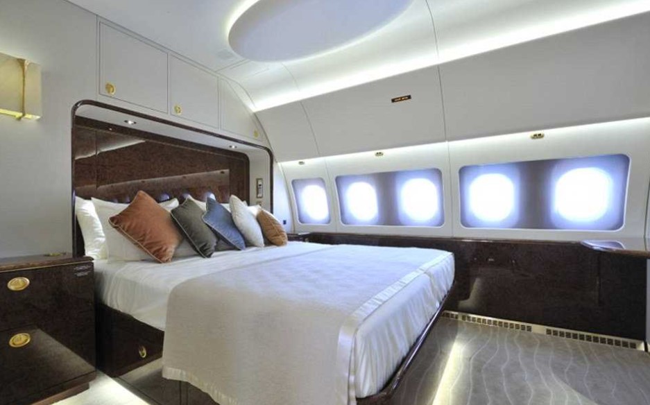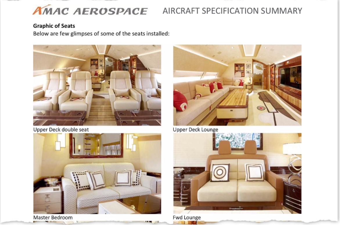 Uçağın broşürü, Trump'ın tercih ettiği türden bir ihtişamı duyuruyordu. Yatak odasında "en yüksek kalitede yumuşak kumaşlar", "lüks deri ve zarif ahşap kaplamalar" ve "neredeyse bir sanat eseri" olan "lüks bir şekilde tasarlanmış" bir banyo vardı.