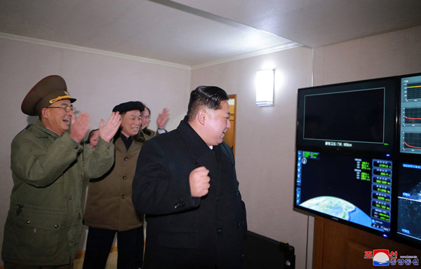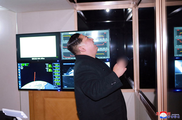 Kim Jong-un'un bizzat izlediği fırlatma sırasında yanındaki generalleri tebrik ettiği ve gökyüzünde ilerleyen füzeyi izlediği görülüyor.