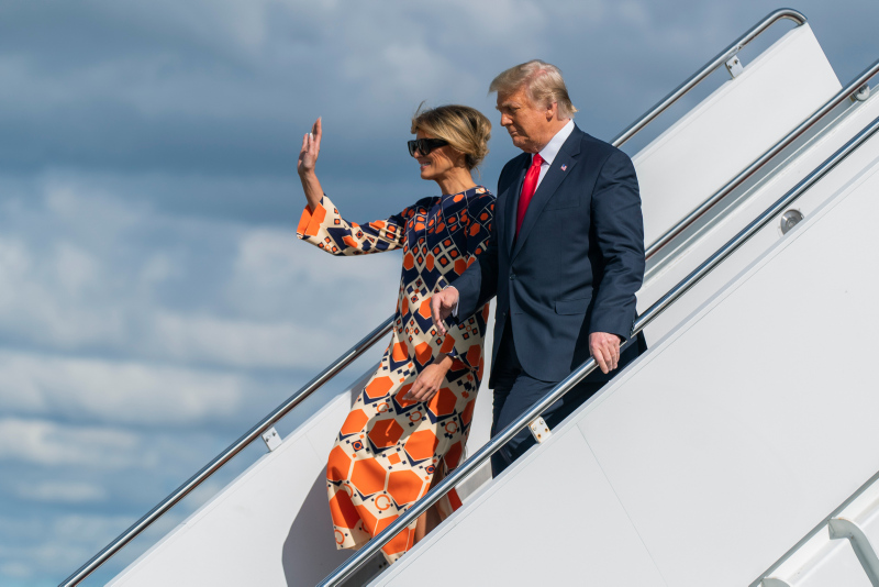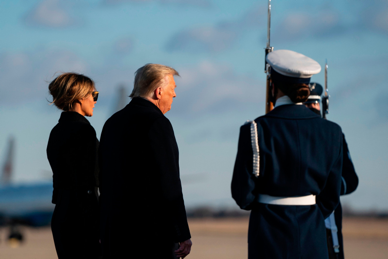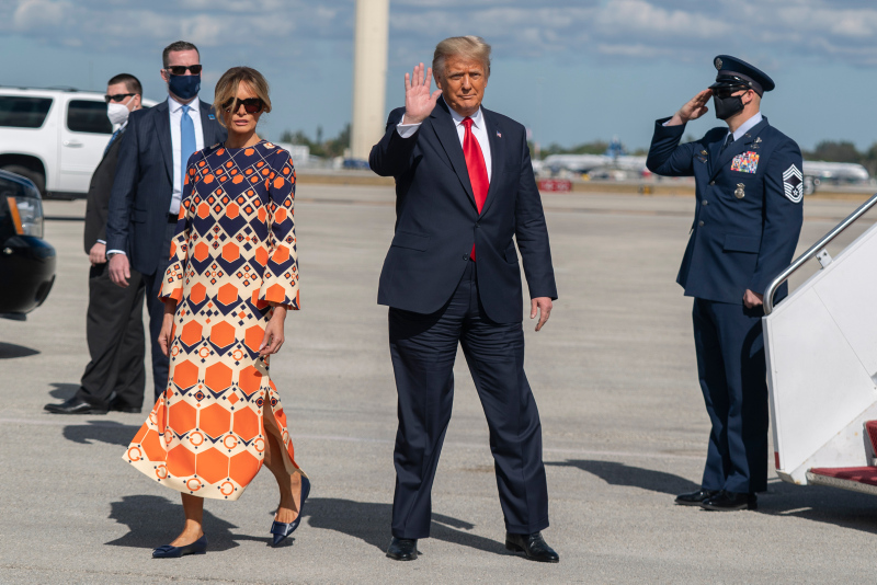 Devir teslim törenine katılmayan Donald Trump ve eşi Melania Trump, başkanlık uçağı Air Force One ile Florida Palm Beach'e indi. Washington'dan ayrılırken siyahlara bürünen Melania Trump, uçaktan renki kıyafetiyle indi. Trump'ın bu hareketi kıyafetiyle mesaj mı verdi sorularını da beraberinde getirdi.