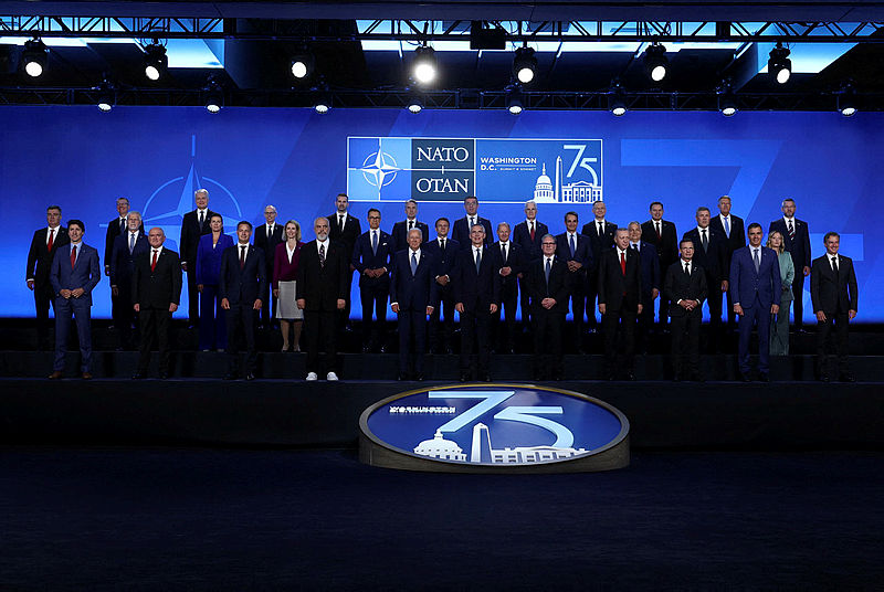 Liderler, toplantı öncesi Washington'daki zirve alanında, ABD Başkanı Joe Biden ve NATO Genel Sekreteri Jens Stoltenberg tarafından resmi törenle karşılandı, ardından aile fotoğrafı çektirdi.