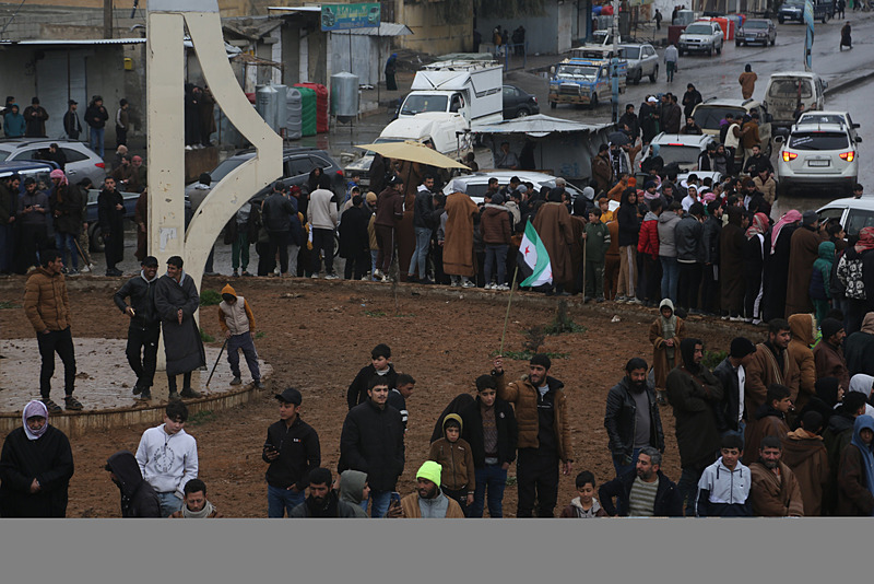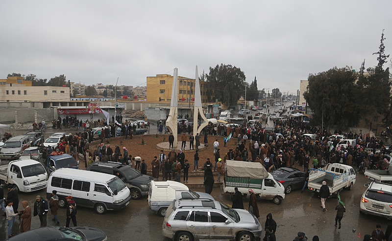 Yerel kıyafetlerini giyerek araçlarıyla Tabka caddelerine çıkanlar Suriye bayrakları taşırken çocuklar dahil çok sayıda Suriyeli Tabka Meydanı'nda bir araya geldi.