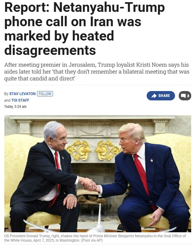 İsrail merkezli The Times of Israel gazetesinin haberine göre, Netanyahu ile ABD Başkanı Donald Trump arasında İran konusunda yapılan telefon görüşmesi sert tartışmalara sahne oldu. Nükleer meseleler üzerinden yürüyen diyaloğun, taraflar arasında ciddi bir gerilime yol açtığı belirtiliyor.