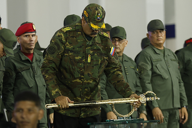 Maduro'nun törendeki en dikkat çekici anı, Latin Amerika bağımsızlık mücadelesinin lideri Simon Bolivar'ın tarihi kılıcını tribünlere doğru kaldırmasıydı.