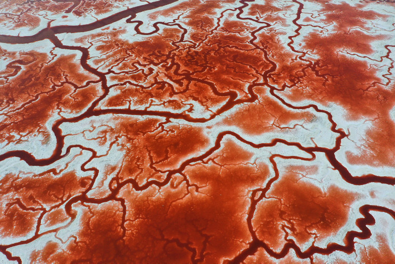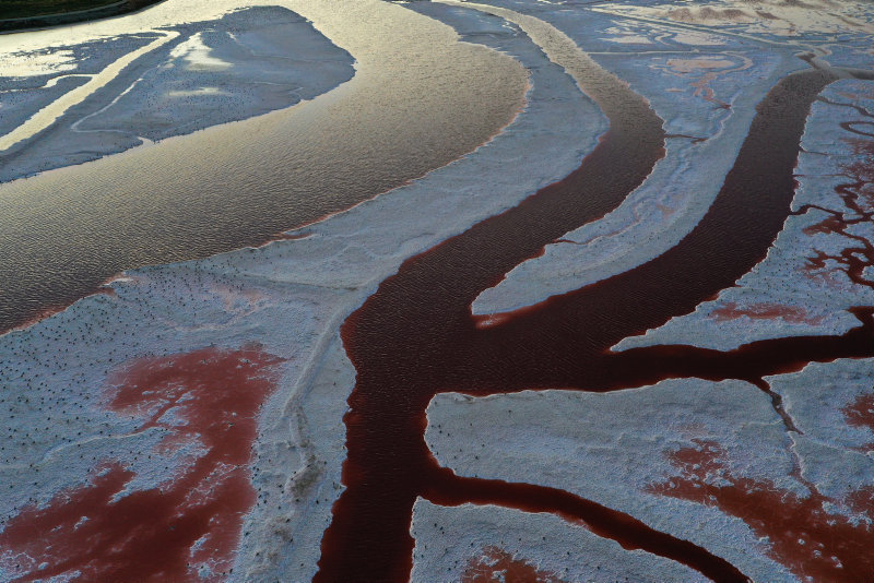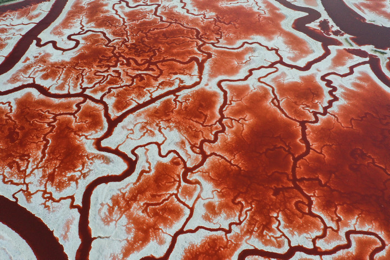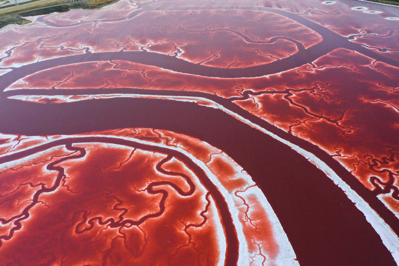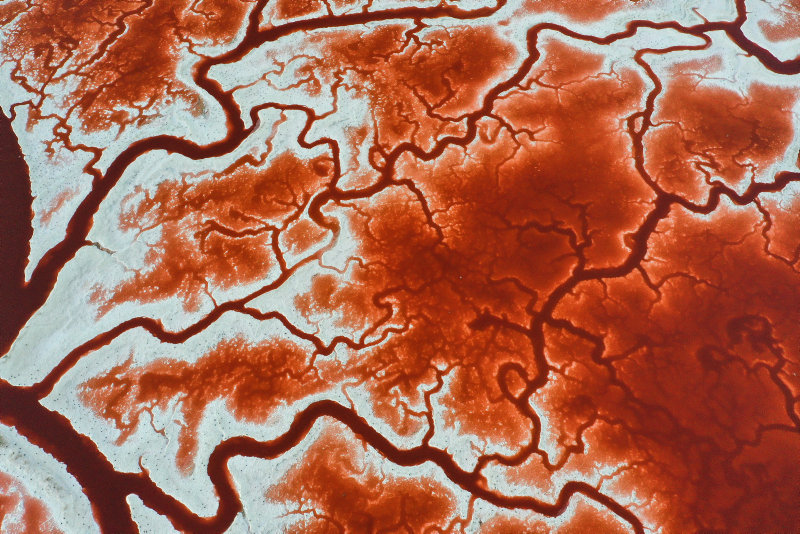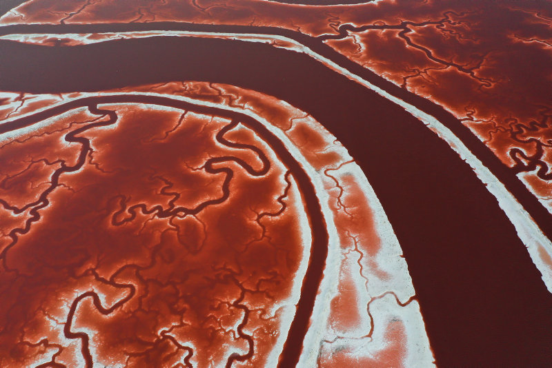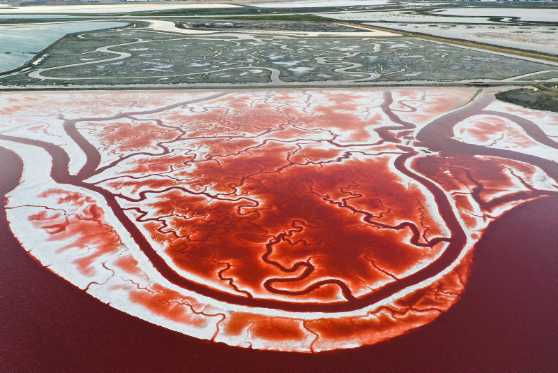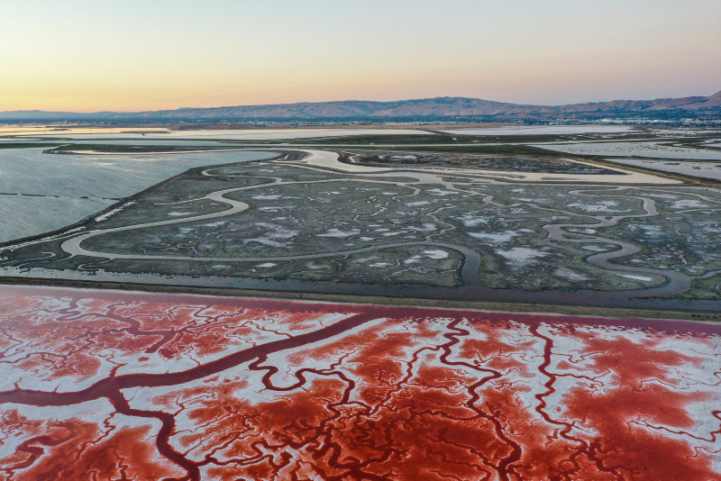 California'nın San Francisco körfezindeki San Jose kentinde yer alan, adeta vücuttaki damarları ve kan dolaşımını andıran Alviso Tuz Göletleri havadan görüntülendi.