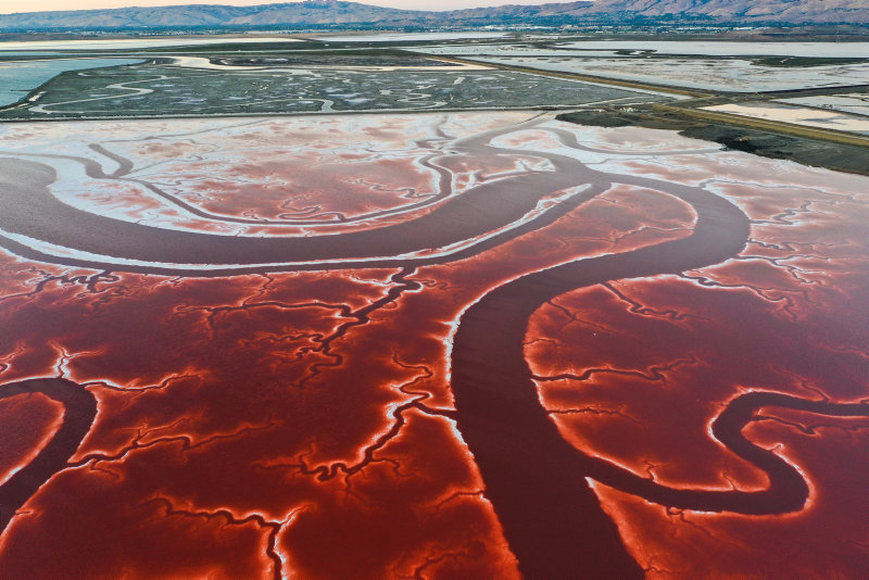 California'nın San Francisco körfezindeki San Jose kentindeki Alviso Tuz Göletleri görenleri hayran bırakıyor. Alviso Tuz Göletleri adeta vücuttaki damarları ve kan dolaşımını andırıyor.