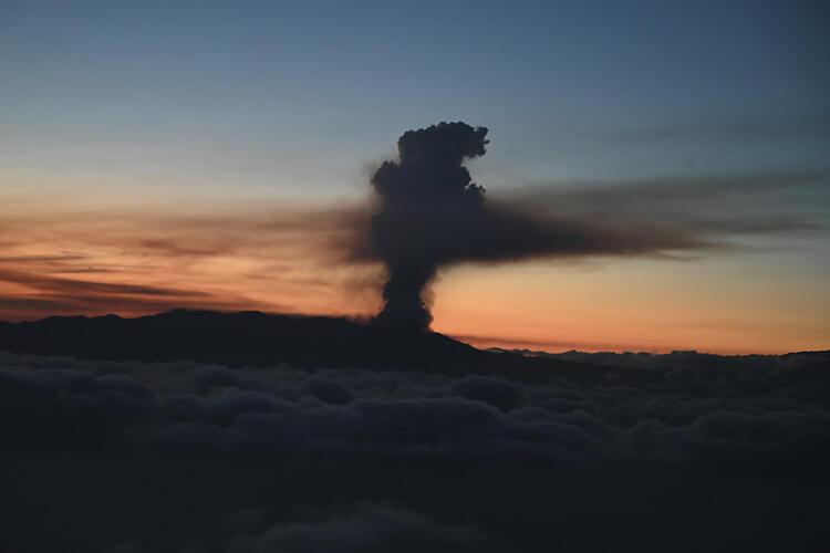 Pazar günü volkandan gökyüzüne püsküren lavların yüksekliği yüzlerce metreyi buldu. Şans eseri patlama sırasında yanardağın yakınında hiç kimse yoktu.