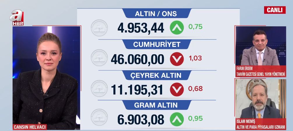 Altın fiyatlarında rekor serisi sürerken Altın ve Para Piyasaları Uzmanı İslam Memiş'ten yatırımcıya kritik uyarılar geldi. A Haber canlı yayınında konuşan Memiş, gram altında 10 bin lira senaryosunun masada olduğunu belirterek, "Bu bir teknik fiyatlama değil, manipülasyon var" dedi. Küçük yatırımcının al-sat yaparak kazanamayacağını vurgulayan Memiş, "İhtiyacınız yoksa sakın elinizdeki altını satmayın" çağrısında bulundu.