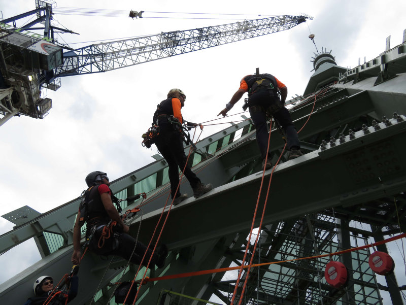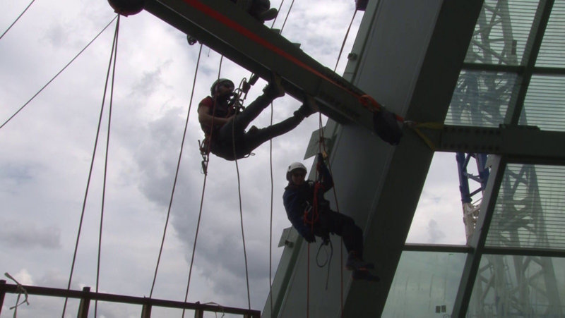 İstanbul Finans Merkezi'nde yer alan ve Avrupa'nın en yüksek binası olma özelliğini taşıyan, 353 metre uzunluğundaki 72 katlı Türkiye Cumhuriyet Merkez Bankasının (TCMB) çatısının cam montajı, alanında uzman 40 kişilik ekip tarafından yapılıyor.