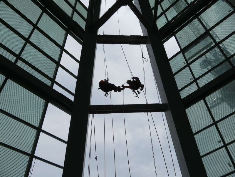 Söz konusu çalışmalar kapsamında çatı bölümlerinin yerleştirilmesine başlandı. Alanında uzman, 40 kişilik mühendis ve dağcılardan oluşan ekipçe yürütülen çalışmalarda, çatının cam montajları yapıldı.
