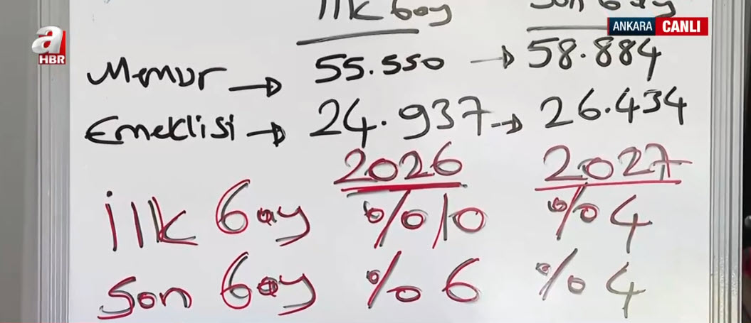 Hükümet teklifini açıkladı. Tabii ki bu ilk teklif. Dolayısıyla 2026 yılının ilk 6 ayı için yüzde 10, son 6 ayı için yüzde 6. 2027 yılı için ilk ay yüzde 4, ikinci 6 ay için yüzde 4.