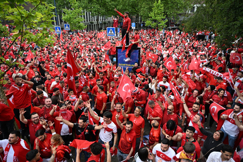 Kritik maçın oynanacağı şehir olan Dortmund'da bulunan Türk taraftarlar, kenti adeta kırmızı - beyaza boyadı. Taraftarlar, 'Mehter Marşı' ve 'Ölürüm Türkiyem' eşliğinde tezahüratlarda bulundu.