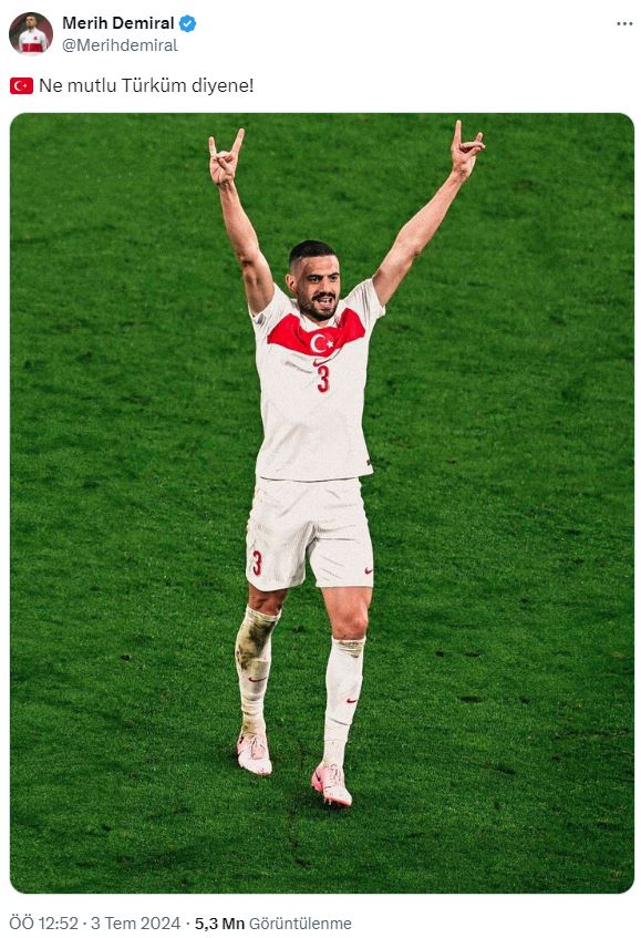 A Milli Futbol Takımı Almanya'nın Leipzig kentinde Avusturya'yı 2-1 mağlup ederek çeyrek finale adını yazdırırken ilk dakika attığı gol ile adeta maçın kaderini belirleyen Merih Demiral yalnızca iki golü ile değil, Bozkurt selamı ile Almanya ve Avusturya'nın tüm ayarını bozdu.
