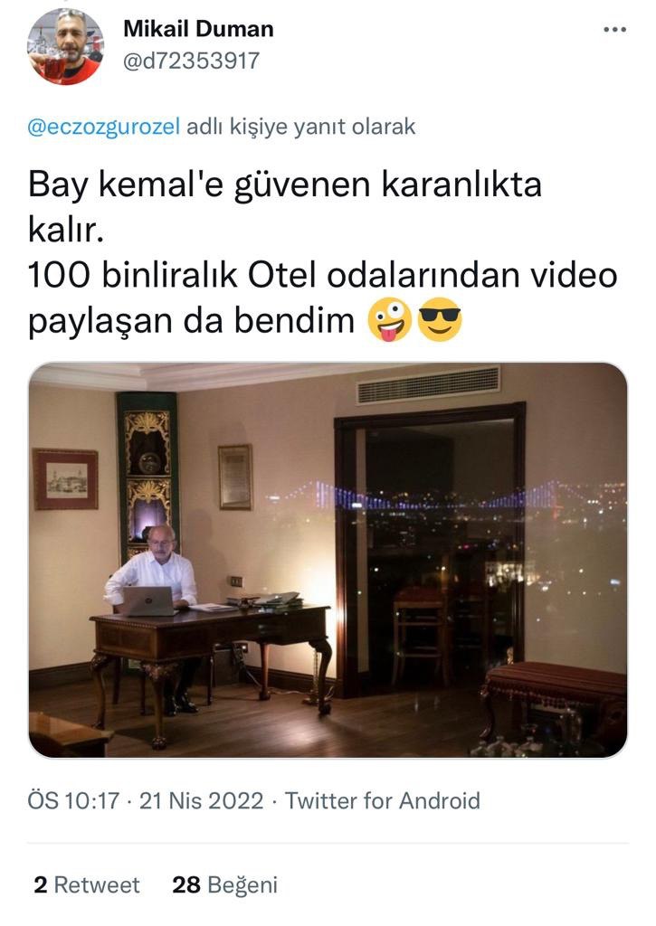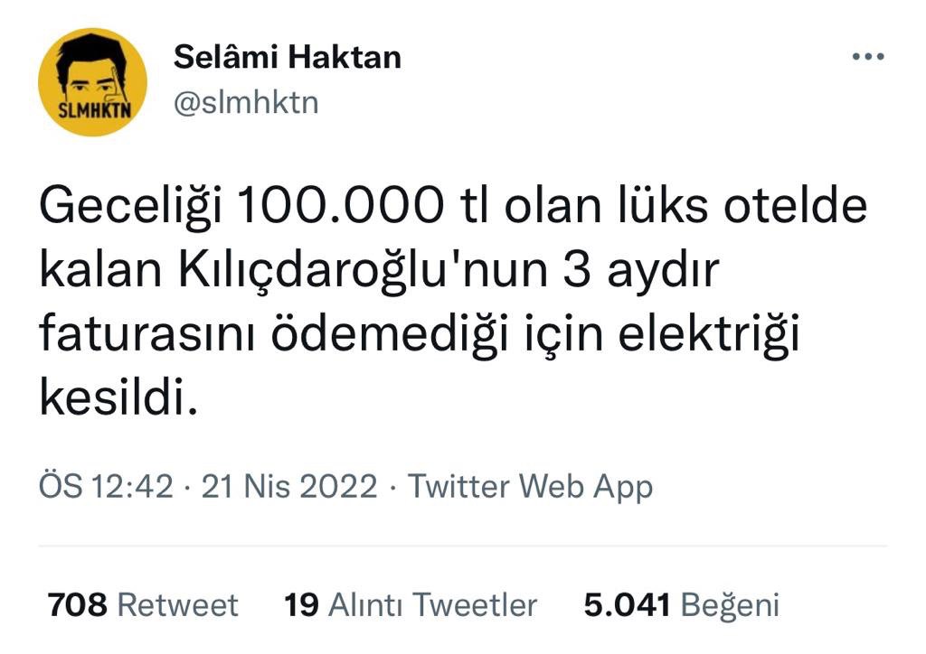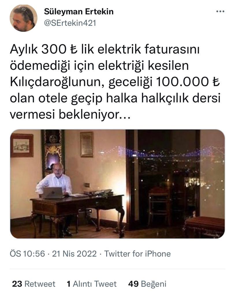 100 bin liralık otel keyfi yapıp elektrik faturasını ödemeyen Kılıçdaroğlu alay konusu oldu