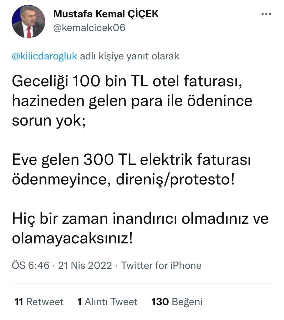 "KEMAL KILIÇDAROĞLU BİR GECELİK OTEL MASRAFIYLA 25 YIL BOYUNCA ELEKTRİK FATURASINI ÖDER"