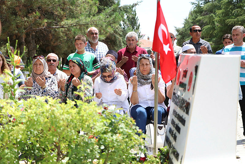 Hain darbe grişiminin 8. yıl dönümünde şehidin kabrini ziyarete gelen çok sayıda vatandaş, Kur'an-ı Kerim ve dua okudu.