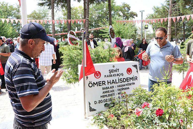 Fetullahçı Terör Örgütü'nün 15 Temmuz'daki darbe girişimi sırasında, Ankara'da Özel Kuvvetler Komutanlığında darbeci general Semih Terzi'yi vurduktan sonra şehit olan Piyade Astsubay Kıdemli Başçavuş Ömer Halisdemir verdiği destansı mücadeleyle tarih yazdı. Vatanına ihanet eden Semih Terzi'yi öldüren şehit Ömer Halisdemir bayrağını ve vatanının şerefini canı pahasına korudu.15 Temmuz hain darbe gecesinin yıl dönümünde Türk milleti Şehit Ömer Halisdemir'i unutmadı. Kahraman Piyade Astsubay Kıdemli Başçavuş Ömer Halisdemir'in Niğde'deki kabrini Türkiye'nin dört bir yanından vatandaşlar ziyaret etti. İşte kare kare o anlar...