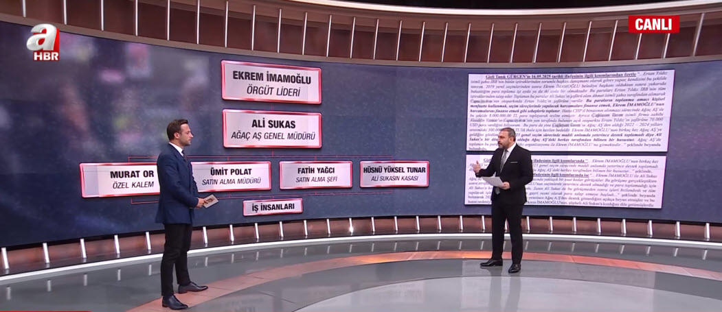 İstanbul Büyükşehir Belediyesi (İBB) iddianamesinde Ağaç A.Ş.'de rüşvet iddiasının detayları ortaya çıktı. A Haber muhabiri Mustafa Kadir Mercan özel bilgileri canlı yayında anlattı.