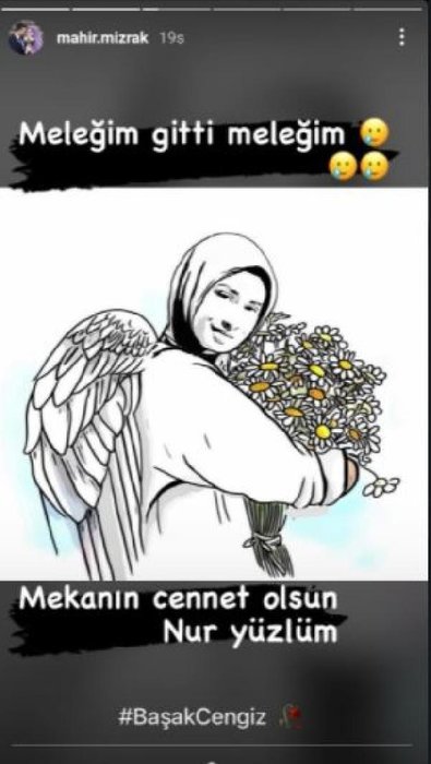Mahir Mızrak, nişanlısı Başak Cengiz ile çekilen fotoğraflarını da "Nur yüzlü meleğim, bakmaya doyamadığım, dokunmaya kıyamadığım Allah'ıma emanetsin. Seni çok seviyorum, çok özledim. Allah'ım sabrını ver yarabbim çok zor çok" mesajıyla paylaştı.