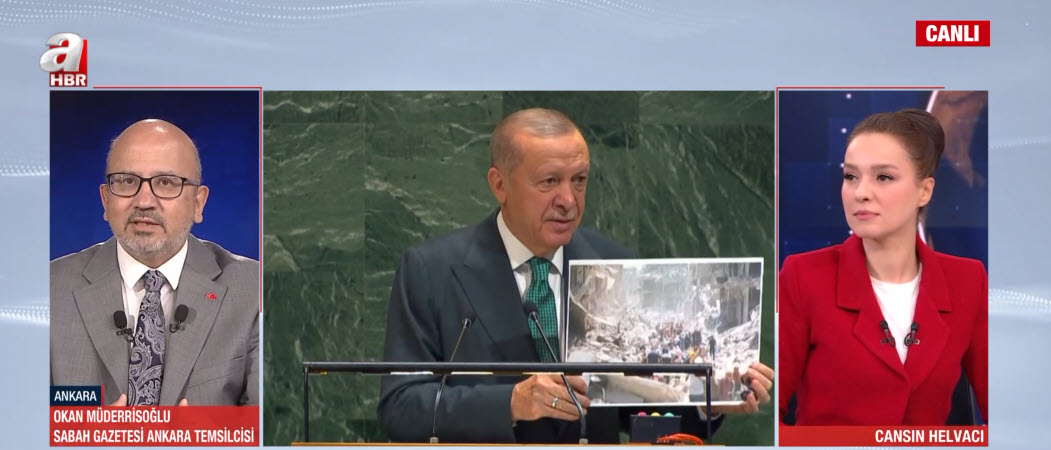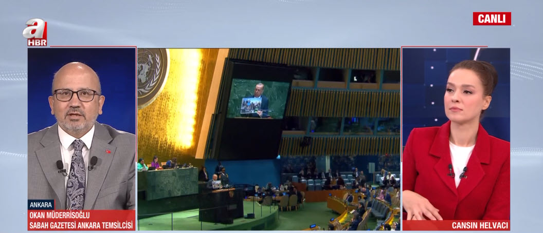 Başkan Recep Tayyip Erdoğan'ın ABD ziyaretinde yaşananların arka planını Sabah Gazetesi Ankara Temsilcisi Okan Müderrisoğlu A Haber canlı yayınında anlattı. Müderrisoğlu, Başkan Erdoğan'ın gösterdiği Gazze fotoğraflarının Birleşmiş Milletler Genel Kurulu'na sokulmamaya ve engellenmeye çalışıldığını belirtti.