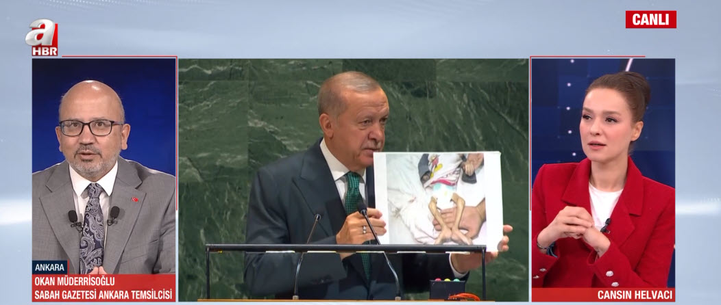 Yani bugün Kolombiya Devlet Başkanı Gazze ve Filistin bağlamında konuşma yapacak diye vizesini iptal ettiler. Yani Türkiye ve Recep Tayyip Erdoğan etkisi bir çarpan etkisi. Suya atılan bir taş misali dalga dalga merkezden çeperlere doğru yayılıyor. O fotoğrafların gösterilmemesi için araya girenler, engellemeye çalışanlar elbette tabii ki bu gerçekle yüzleşmek istemeyenler ama tabii Tayyip Erdoğan'ı tanımayanlar var içinde. Tabiri caizse söke söke o fotoğraflar Birleşmiş Milletler Genel Kurulu'nda kürsüde ve dünyaya en sarsıcı ve en çarpıcı şekilde gösterildi.