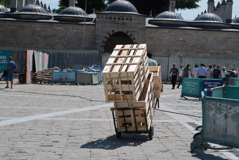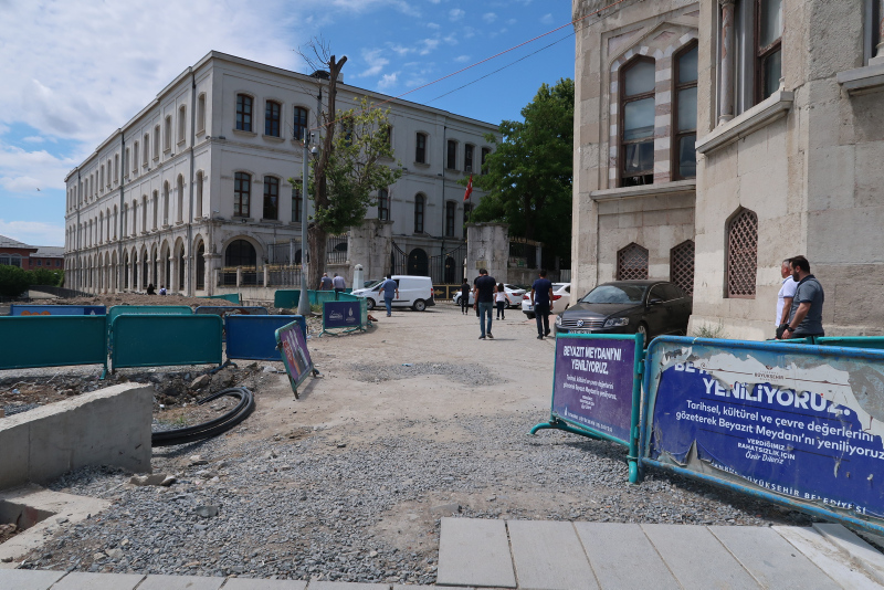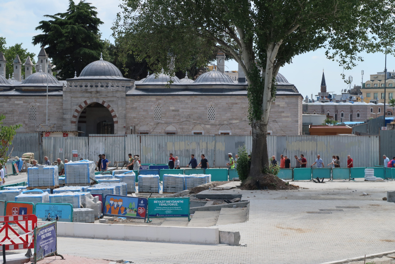 İBB yönetimi tarafından düzenlemesi yapılan Beyazıt Meydanı'na döşenen taşlar hatalı döşeme yapıldığı gerekçesiyle traşlanmaya başlandı.