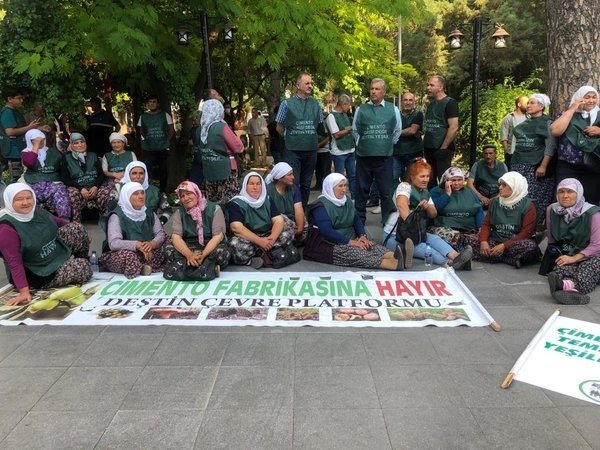 Köylüler, Tekağaç mevkiinde 2021 yılında yapımı başlanan entegre çimento fabrikasının ruhsatının iptali için protesto gösterileri düzenledi, dava açtı.