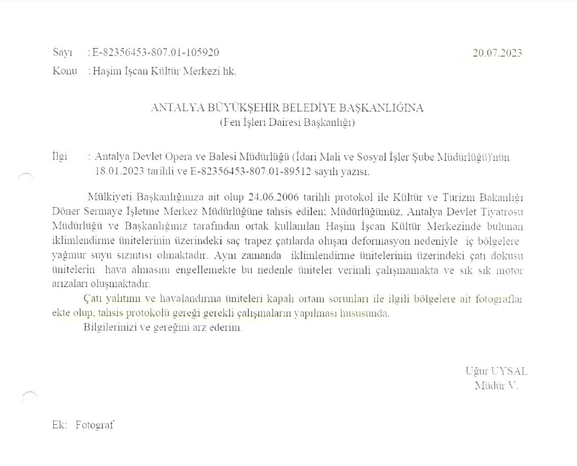 Devlet Tiyatroları Genel Müdürü Tamer Karadağlı, Antalya'daki Haşim İşcan Kültür Merkezi'ndeki bakımsızlıktan şikayet ederek "Belediye bunu görmüyor mu?" diye paylaşımda bulundu. Yalana sarılan CHP'li ABB Başkanı Muhittin Böcek ise "Rezalet dediği bina bakanlığın" yanıtını verdi. Belgelerle konuşan Tamer Karadağlı da "Binanın dış bakımı onarımı sadece belediyeye ait biz kiracıyız. Sayın başkan lütfen protokolü dikkatli okuyun" dedi. Kültür ve Turizm Bakanlığı da belediyeye yazı gönderdi. Böylece Böcek'in yalanı tescillendi