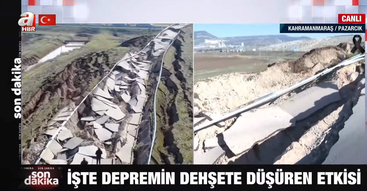 Son dakika haberi... "Asrın felaketi" olarak nitelendirilen iki büyük depremin ardından depremin şiddetini gözler önüne seren yeni görüntüler gelmeye devam ediyor. Antakya Demirköprü karayolu yarıldı, dev çukurlar oluştu. A Haber muhabiri Yusuf Gül o noktadan son durumu aktardı. Öte yandan depremin merkez üssü Kahramanmaraş Pazarcık'ta Evri yolu paramparça oldu. Yol ikiye ayrıldı. Bakın ne hale geldi...