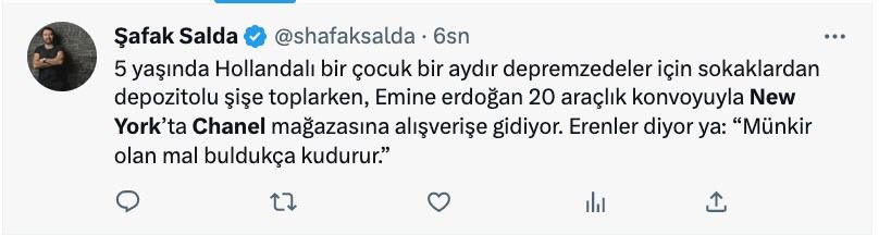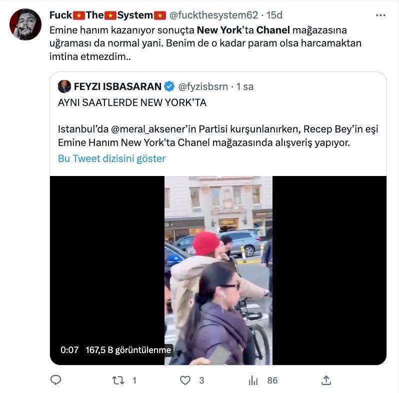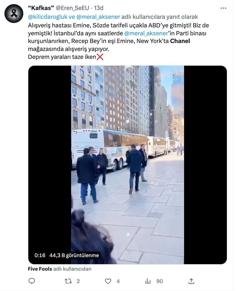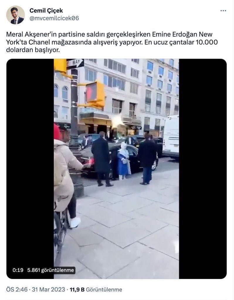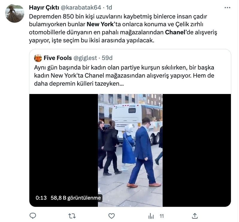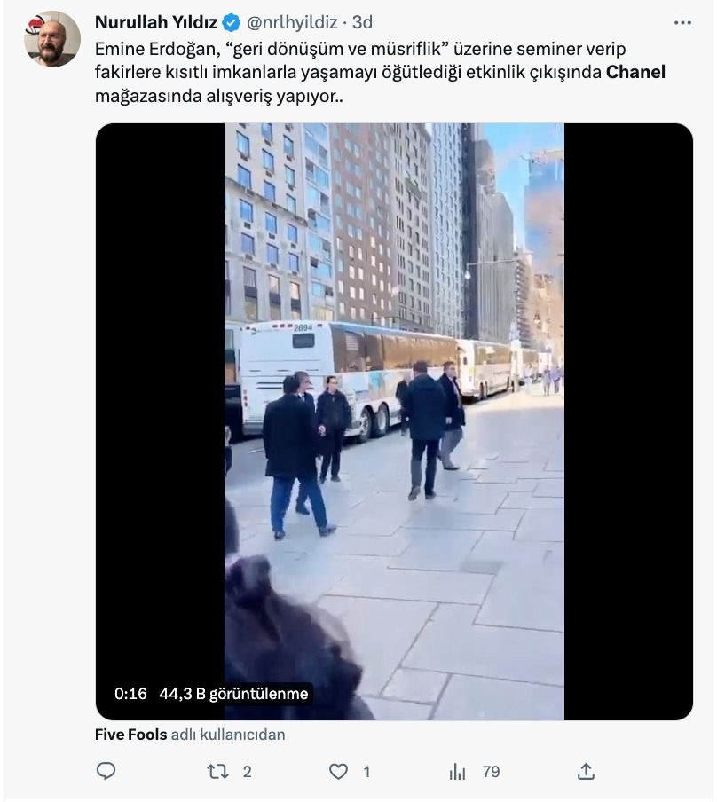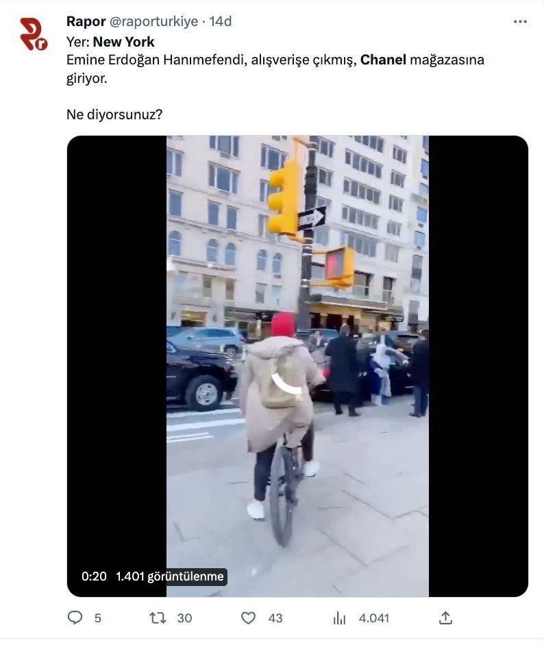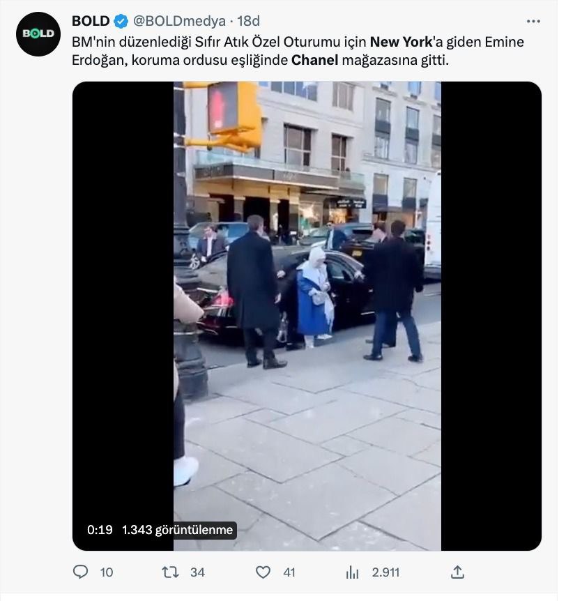 FETÖ'cü hesaplar, Emine Erdoğan'ın BM Genel Kurulu öncesi 29 Mart günü kızı Sümeyye Erdoğan Bayraktar ve torunu ile Central Park'a yürüyüşe gitmesini, "Emine Erdoğan, Chanel mağazasında alışveriş yaptı" şeklinde gerçek dışı iddialarla paylaştı.
