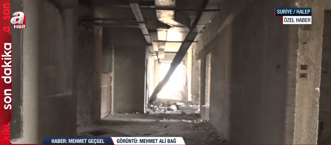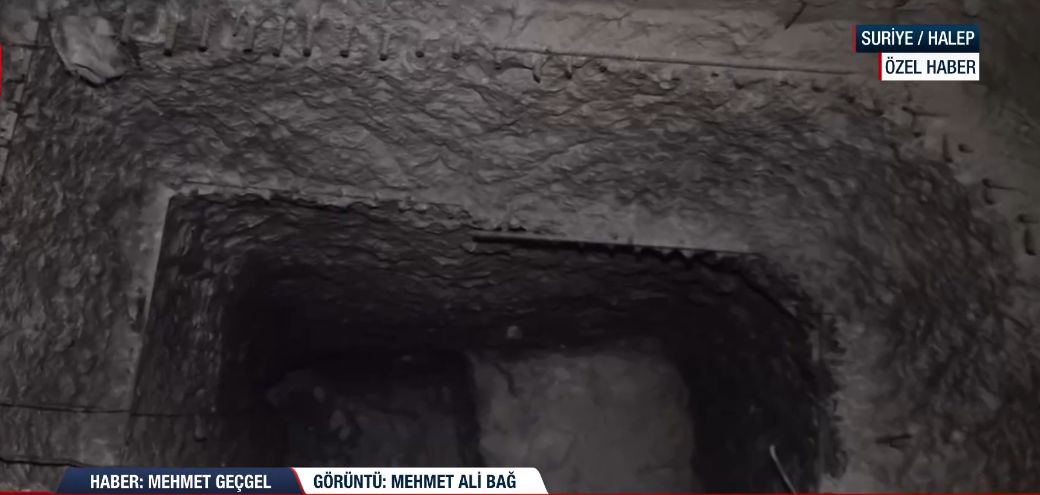 Halep'te terörden temizlenen bölgelerde her adımda yeni bir tuzak ve gizli geçit ortaya çıkıyor. Teröristlerin binaları birbirine bağlayan yeraltı sistemini yerinde inceleyen A Haber muhabiri, "Teröristlerin kullandıkları tüneller buralar. Binaların alt katını kazarak bu şekilde tünellere dönüştürdüler. Buradan hareket ediyordu teröristler." dedi.